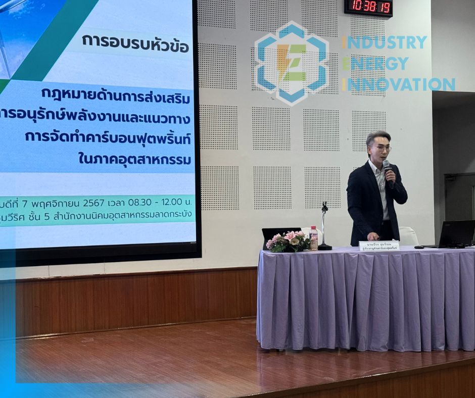 การอบรมในหัวข้อ”กฎหมายด้านการส่งเสริมการอนุรักษ์พลังงาน” และ”แนวทางการจัดทำคาร์บอนฟุตพริ้นท์ในภาคอุตสาหกรรม”